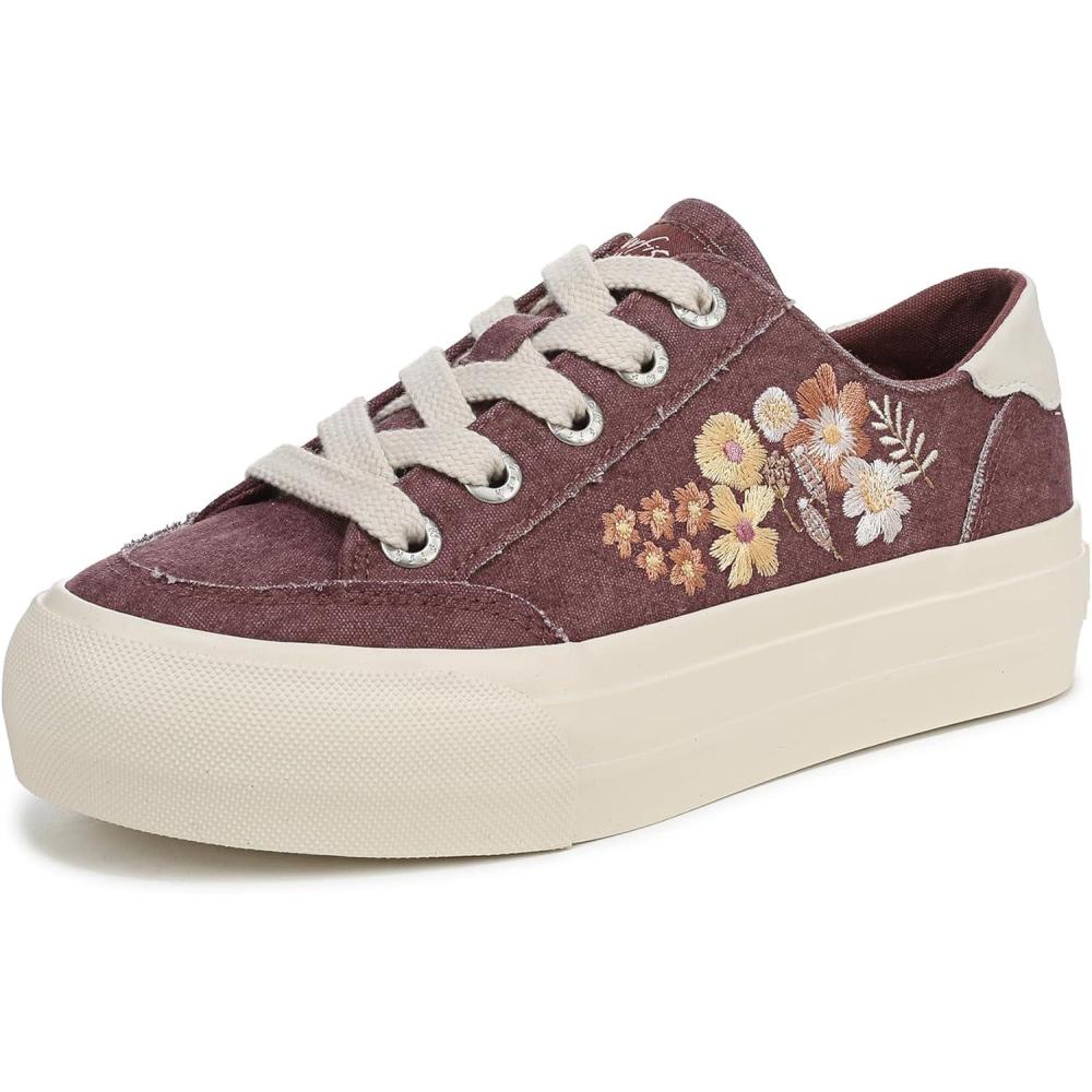 Let your style bloom in the the Sadie-Sun 3 sneaker from Blowfish Malibu. Features include updated embroidery detailing, a platform outsole, and an insole made with BLOOM Foam, an eco-conscious material containing algae. Canvas or faux leather upper. Lace-up front. Embroidery details. Insole made using BLOOM foam. 1.5 inch platform.